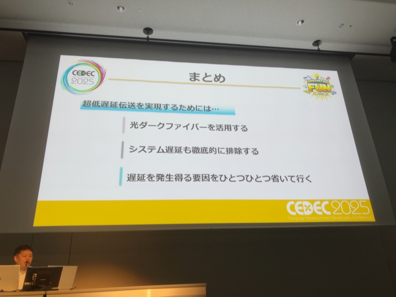 その他にもさまざまな技術的工夫や機材の選定などを行い、目標とした「ほぼ0遅延」の伝送技術を確立し、遠隔地にいる生バンドとホロライブタレントの生セッションも実現した小野さんたち。VTuberのライブを観る時は、派手な演出や目新しいギミックなどに目を引かれがちだが、視聴者に何も違和感を与えず進行するためにも多くの工夫や苦労があるのだと、改めて気づかされるセッションだった。
