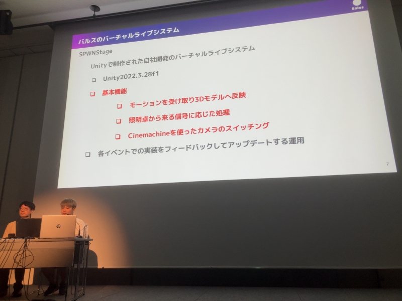 24日(木)の夜に行われた「『ANISAMA V神 2024』を支えた技術 – リアルライブの再現とARシステムの音楽ライブ -」の講演者は、昨年12月15日(日)に開催された「ANISAMA V神 2024」の製作を担当したバルス株式会社の溝口健さんと、同じくバルス株式会社の伊藤雄二朗さん。「ANISAMA V神 2024」(以降、V神)は、初めてバーチャル空間で開催された「冬のアニサマ」として注目を集め、PANORAでもライブレポートを掲載。堤駿介ディレクター(バルス株式会社)と、「アニサマ」の統括プロデューサー&総合演出で「V神」では演出監修を務めた齋藤Pこと齋藤光二さんのスペシャル対談も実施している。