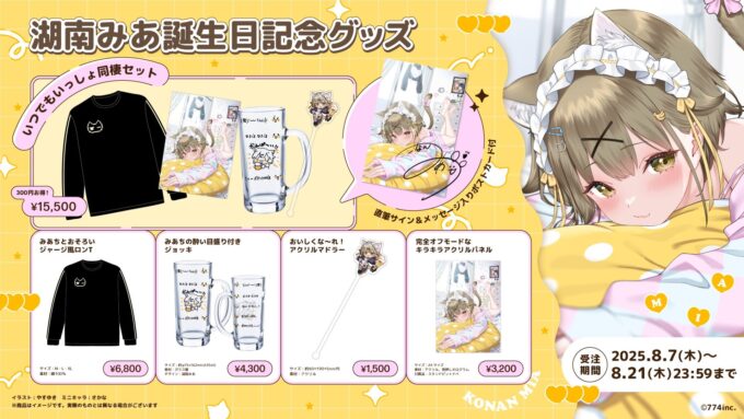 ななしいんく 湖南みあが、2025年8月6日に誕生日を迎えたのにあわせ、誕生日グッズを発売した。