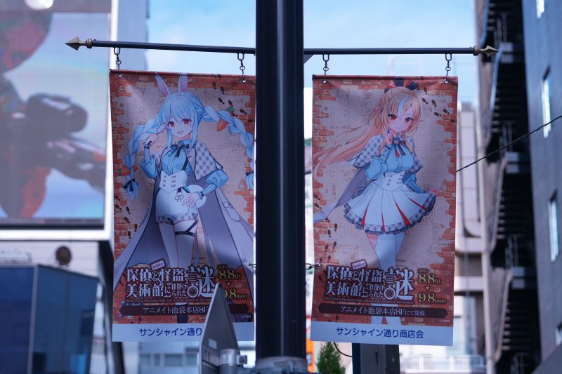 池袋駅から会場までの道では、描き下ろしイラストのホロメンたちがお出迎え