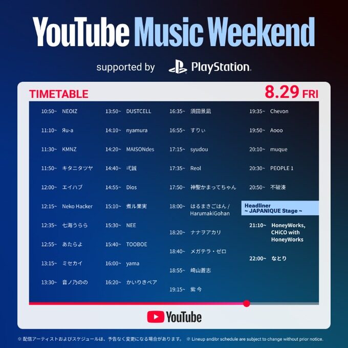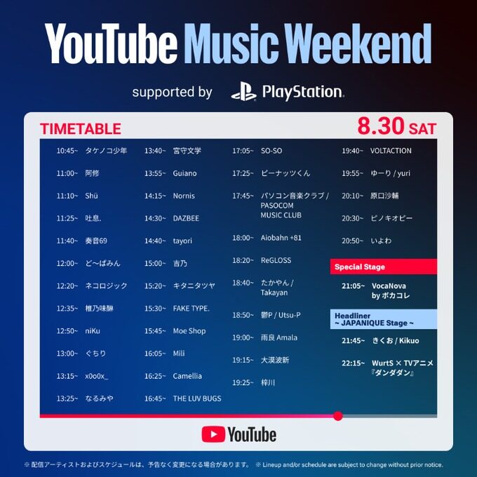 YouTube Music Weekend 10.0 supported by PlayStation® 概要