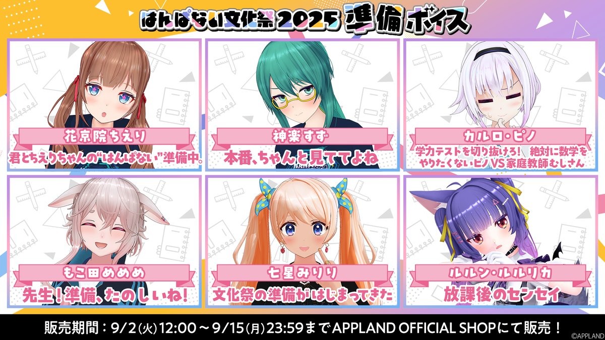アップランド所属「.LIVE」・「ぶいぱい」メンバーの19名が、リアルイベント「はんぱない文化祭2025」にあわせた「はんぱない文化祭2025準備ボイス」の販売を開始した。