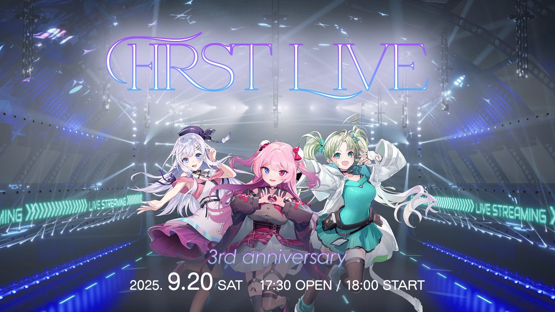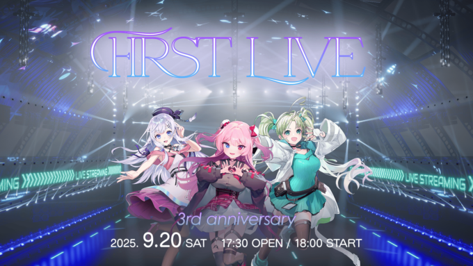 VTuberサークル・ファネスタは、本サークルの3周年記念を記念したライブ「3rd Anniversary Live」 を、2025年9月20日(土)18時よりYouTube配信にて開催。同サークルに所属するVTuberの甘ヶ美ちすい、夢紬そいね、小聡明笑が出演する。