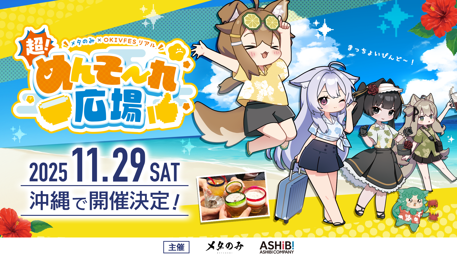株式会社パノラプロ(PANORA)は、株式会社あしびかんぱにーとの共同企画により、沖縄発のバーチャルイベント「OKIVFES」のリアル開催を決定いたしました。開催日は2025年11月29日(土)、会場は沖縄県内を予定しています。