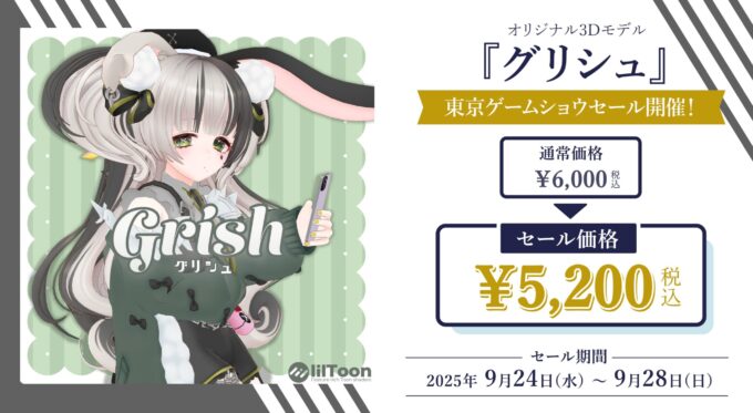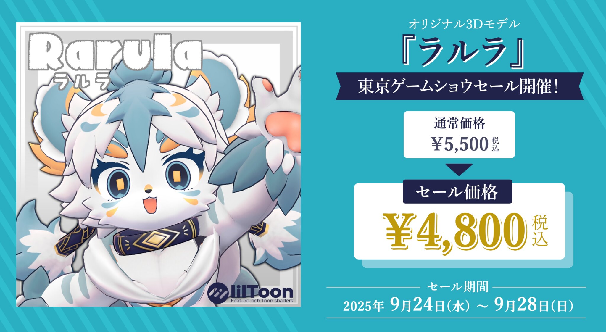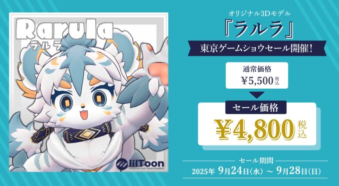ラクジンは22日、東京ゲームショウ 2025へ出展することを発表し、出展記念として現在販売中のVRChat向けオリジナル3Dモデル「Rarula(ラルラ)」と「Grish(グリシュ)」のセールを9月24日より開催する。