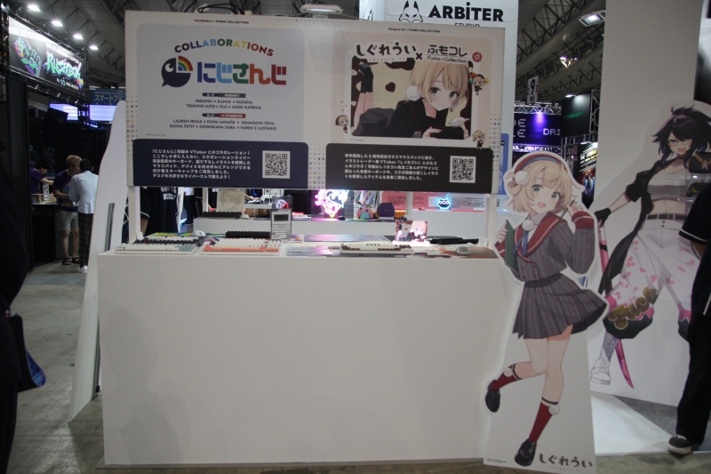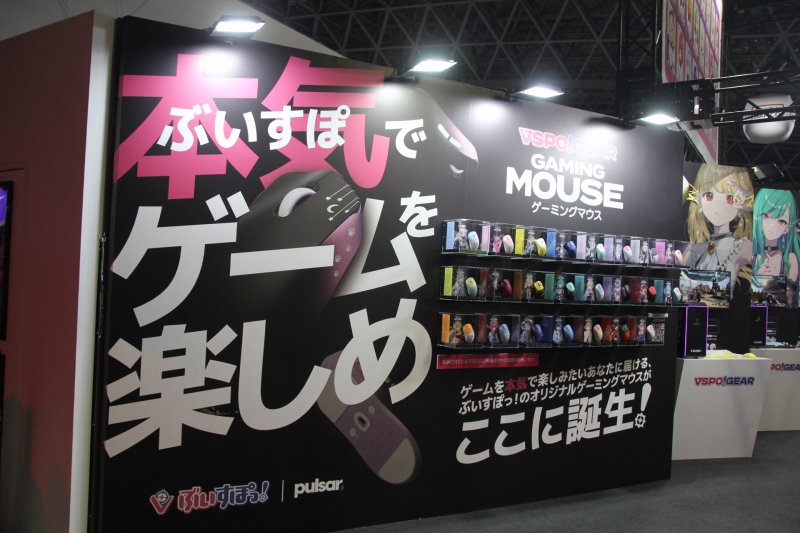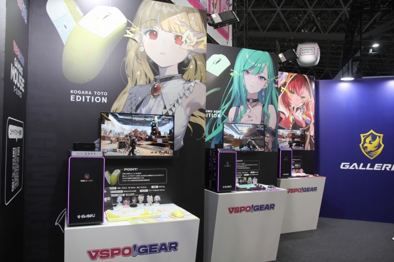 ホール6のハイパフォーマンスPC「ガレリア」のブース(06-C09)では、「ぶいすぽっ!」とのコラボレーションアイテム「VSPO! GEAR」を展示。JPメンバー23人全員のコラボゲーミングマウスや、小雀ととさん八雲べにさん猫汰つなさんに関しては、コラボキーボードも展示されていた。ゲーミングマウスは、試遊も可能らしい。