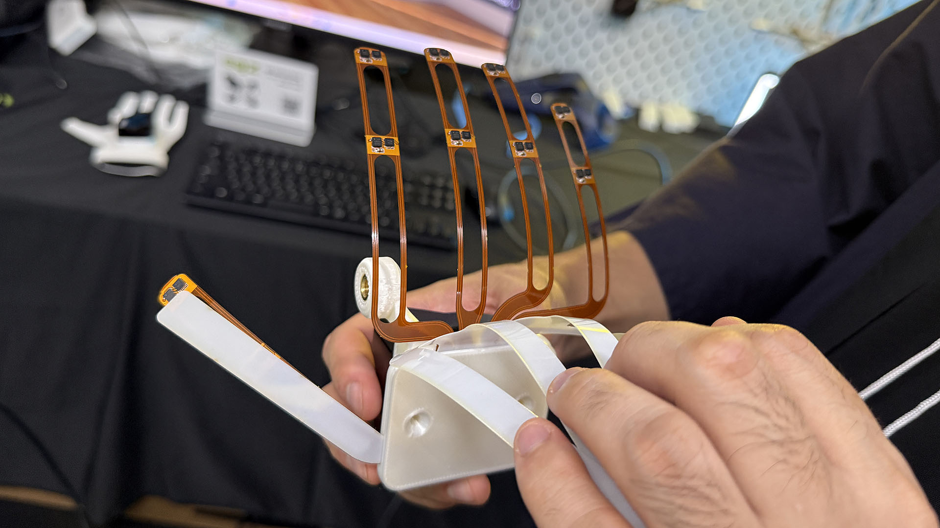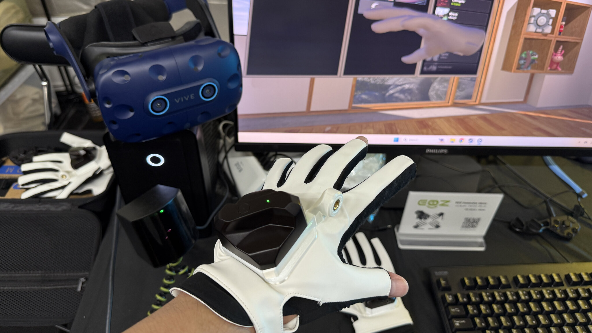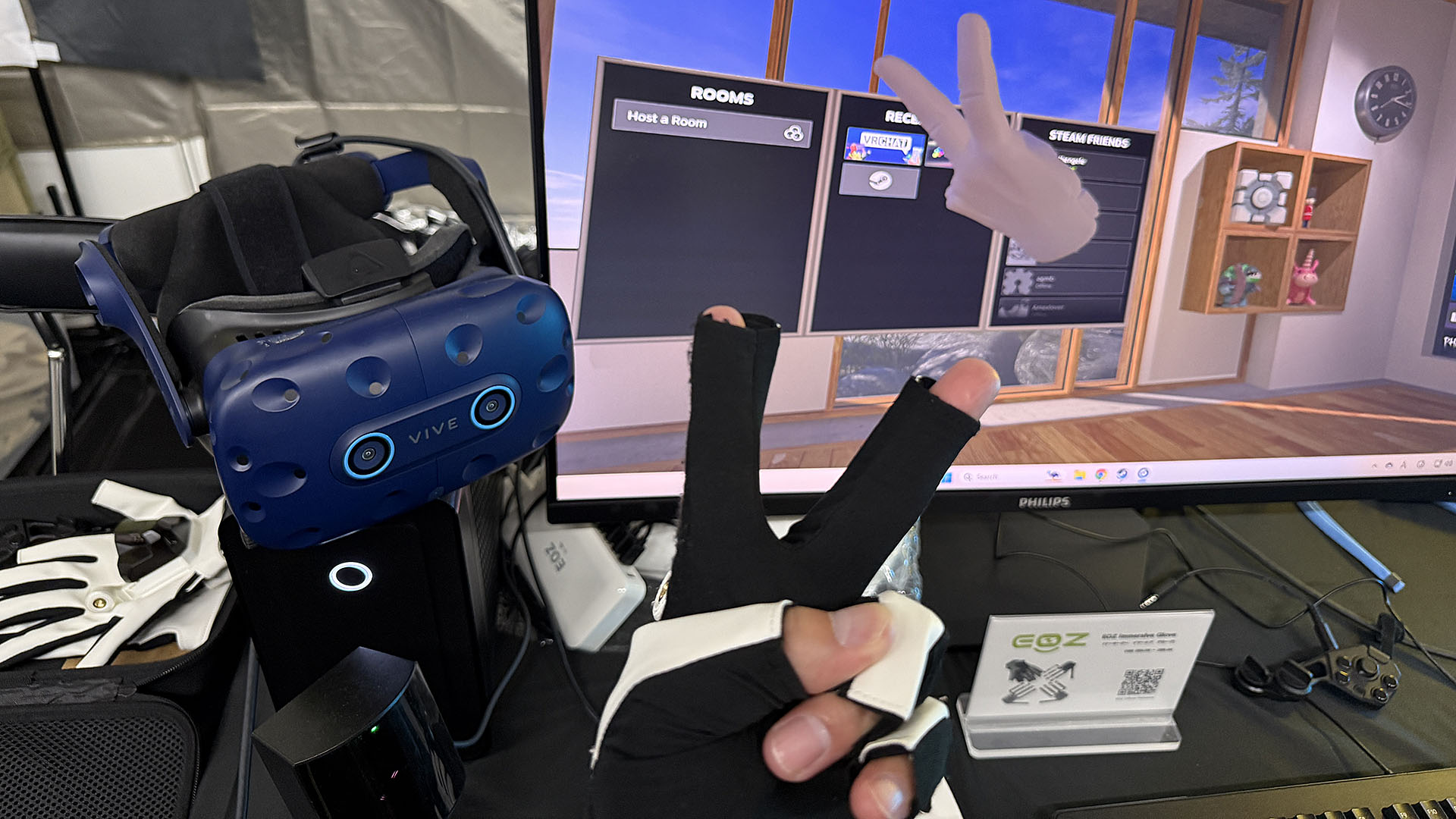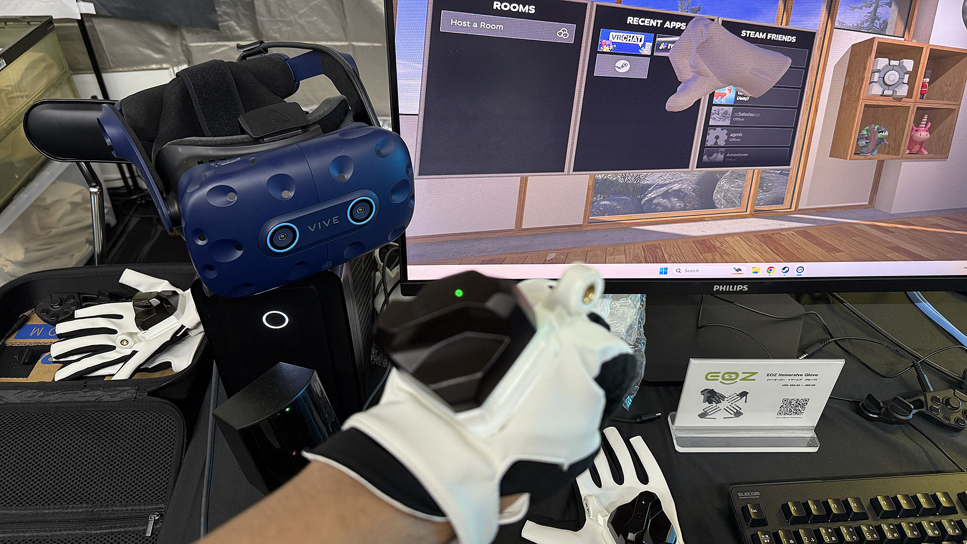 そのAR/VRコーナーのIntoFree/N7R (EOZ)ブースでは、出荷が始まったVRゴーグル「Bigscreen Beyond 2」や、未発売のVR用グローブ「EOZ Immersive Glove」の体験を行っていた。