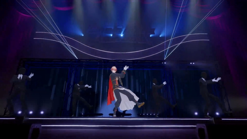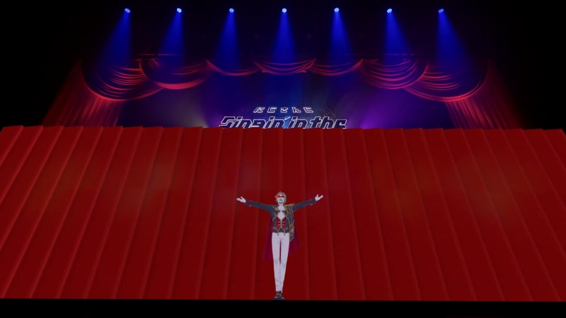 8曲目も続けて、男性ライバーのソロステージ。ダンスボーカルユニット「VOLTACTION」のメンバーで、「にじさんじダンス部」にも所属しているセラフさんがAyumu Imazuの「BANDAGE」をカバー。4人のダンサーを引き連れて、切れ切れのダンスで圧巻のステージを見せる。長い手脚を最大限に生かしたスケールの大きな動きと、奇麗でブレないストップ。静と動の切り替わりの連続が心地良く、ダンスだけでもステージが成立してしまいそうなクオリティだ。にじさんじの中でも有数のダンス巧者であることは知識として知っていたが、プロのダンサーと共に踊るこのソロステージで、その実力を再認識した。