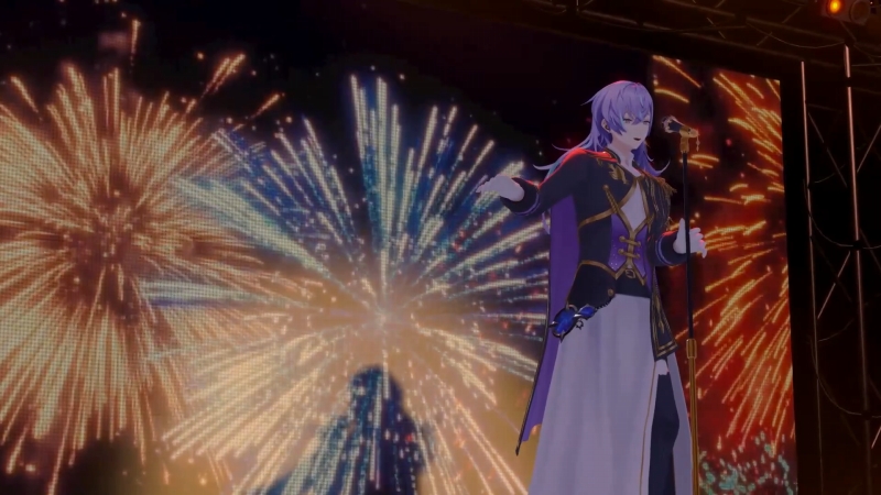 セラフさんが退場し、ステージに一人残った星導さんが歌ったのは、藤井風の「まつり」。常に落ち着いた雰囲気で飄々と話し、つかみどころ無い雰囲気の漂う不思議な鑑定士だが、スタンドマイクの前にスッと立ち、丁寧に歌い上げていく。高音まで柔らかく感情的な星導さんの歌声と、スクリーンに映る打ち上げ花火が合わさって、会場中がエモーショナルな空気に包まれているようだ。