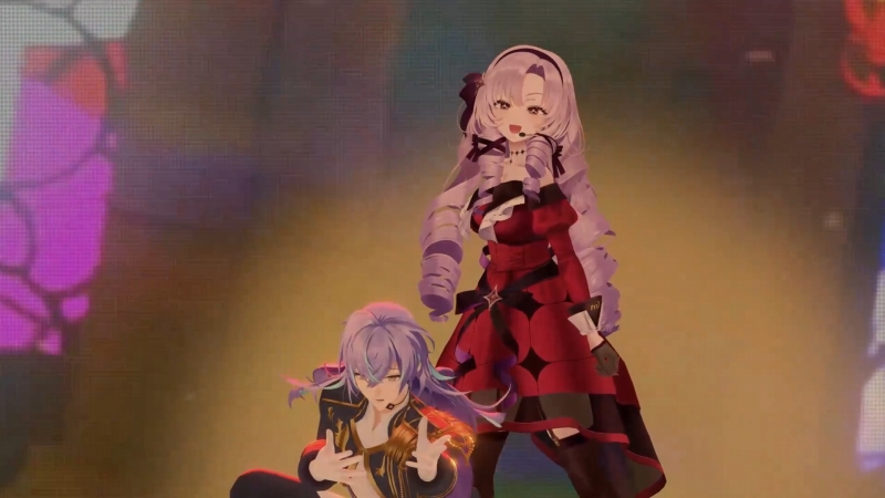 続く12曲目は、通常衣装のサロメさんと、共通衣装の星導さんによるボカロ曲「エル・タンゴ・エゴイスタ」。筆者は、この二人が並ぶ姿を初めて観たが、衣装のチョイスも含めて、ビジュアルの相性が抜群。姫と騎士のようなシナジーを感じる組み合わせだ。二人の掛け合いを強調する振り付けとカメラワークも相まって、まるでミュージカルを観ているようだった。