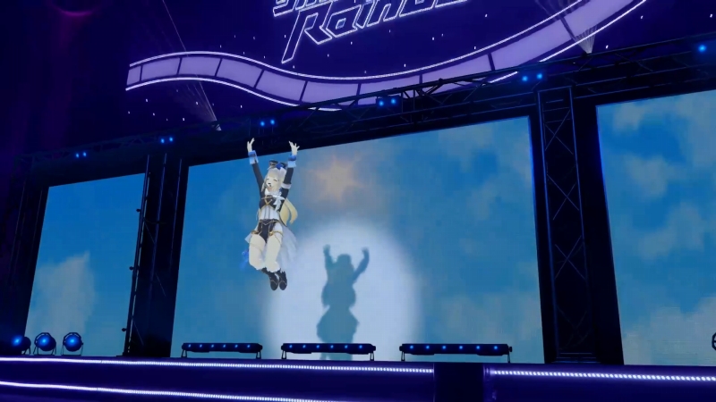 そして、二人でのMCの後は、本ツアーの全出演者の中で、ライバーとしてのキャリアが最も短い栞葉さんのソロコーナー。デビュー2周年を迎えるよりも早くワールドツアーのステージに立った“犬のお巡りさん”は、大好きな「学園アイドルマスター」の楽曲をカバー。一見、儚げだが周囲の天才からも一目置かれるほど芯が強い努力型アイドルの葛城リーリヤの持ち曲、「白線」を笑顔で元気一杯に披露した。コンテンツ愛にも溢れる全力の歌とダンスは、そのままリーリヤのイメージとも重なる。また、立った状態から、ほぼ膝の動きだけで軽く飛んでいるように見えたジャンプの高さには驚かされた。