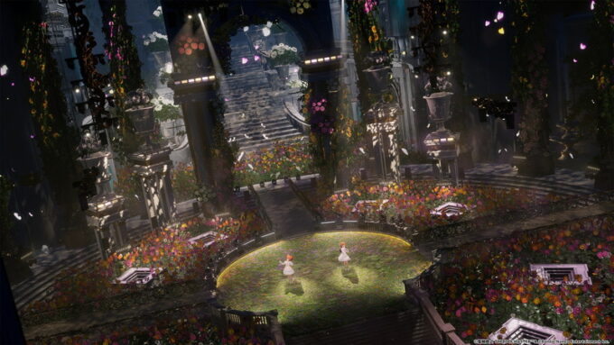 xRライブでは、石柱に囲まれた花の国の広場にて歌う2人を、様々な映像演出とともに見ることができる。