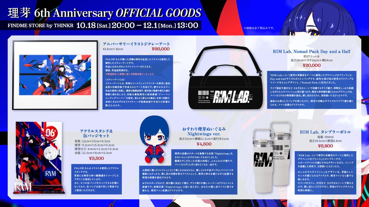 理芽6th Anniversary OFFICIAL GOODS:https://findmestore.thinkr.jp/blogs/features/rim_6th_anniv