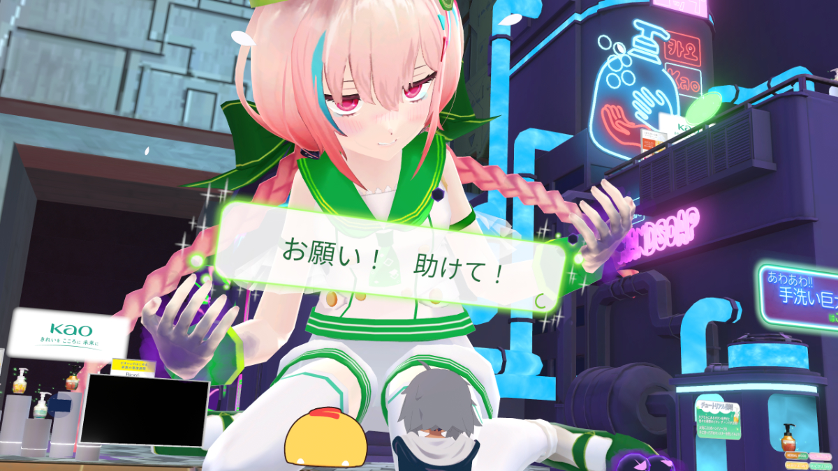 「花王」ブースでは、恒例となってきた「公式が少しはっちゃけているゲーム」を今回も展示。手が汚れて泣いているVketちゃんの手をきれいにしてあげるゲームと、汚れたトイレを掃除するゲーム、二つのゲームを楽しめる。