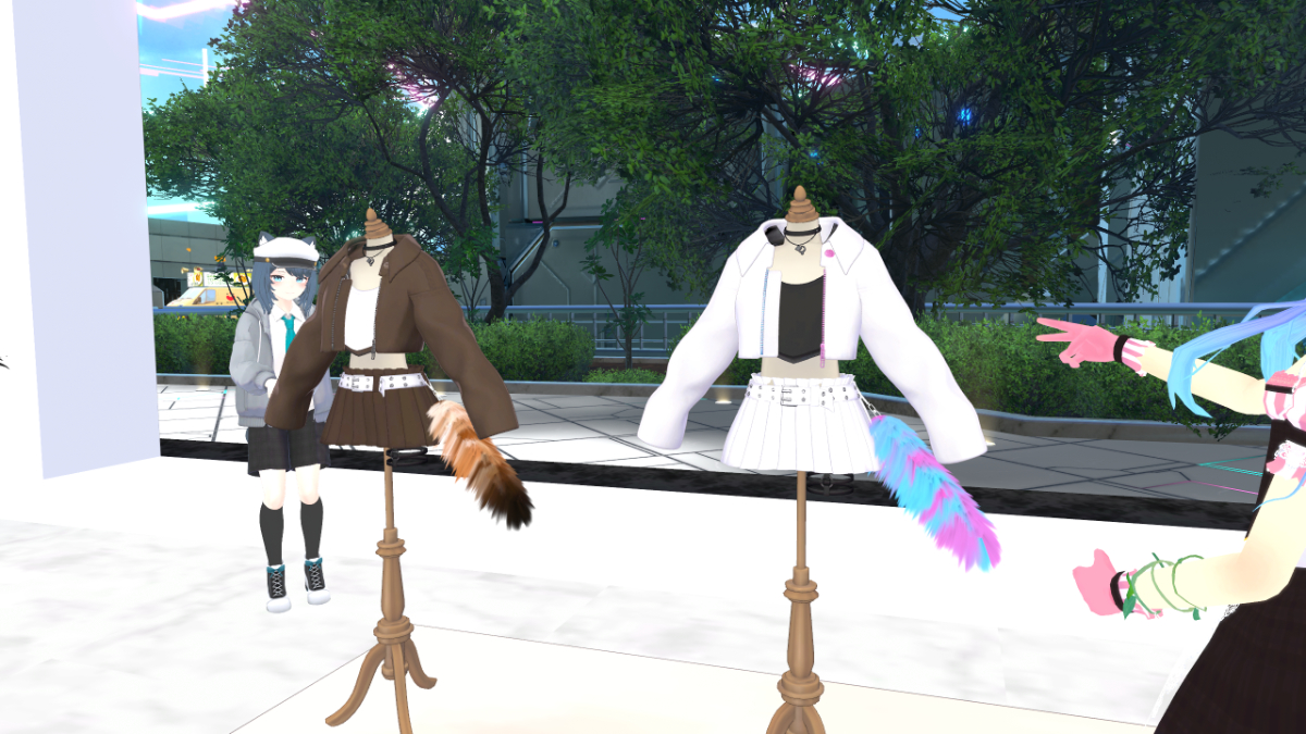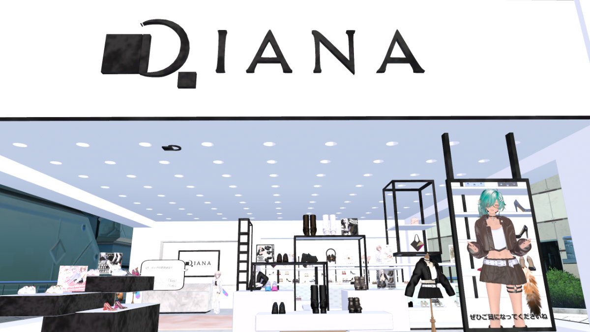 最近、VRChatでの衣装販売や、実店舗でのアバター接客など、バーチャル技術の活用が目立つ「DIANA」のブースは実際の店舗がもとになっているリアルなもの。期間中には実際の店員さんが接客することもあるとのこと。オフィスカジュアルなテイストと上品さ、高すぎない価格帯から多くのOLに愛用されているブランドのバーチャルファッション分野への展開は、女性ユーザーにとっては身近なブランドがVRChat上にあることは、多くの人の目に留まりそうだ。