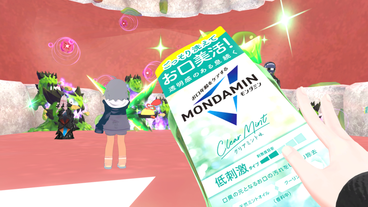 シンガポールの観光名所がギュッと凝縮されたようなパラリアルシンガポール。唇からモンダミンが流れているインパクト大のブースは「アース製薬」。ここではVketちゃんの口の中に入り、口内の汚れを退治して綺麗にするゲームを楽しめる。