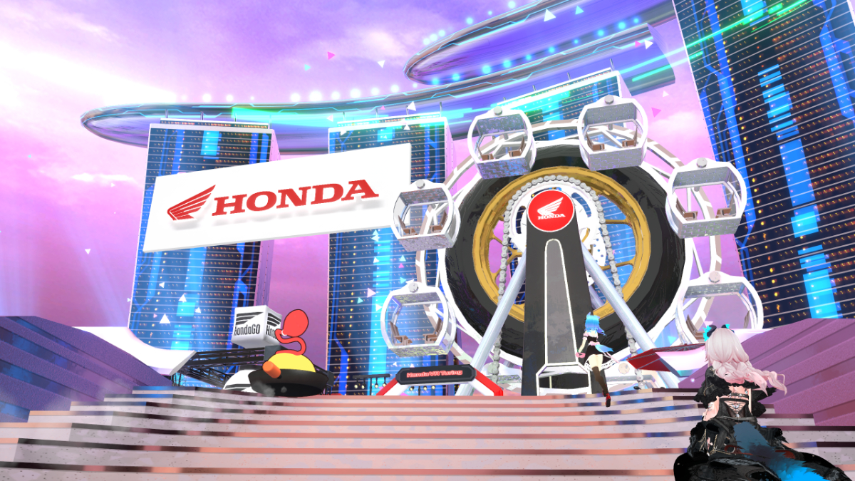 「ホンダ」のブースでは、ホンダのバイクで走るツーリング体験と、観覧車に乗れる体験を楽しめる。ツーリングは始まると自動で走るので、景色を楽しみながら会話もできる。