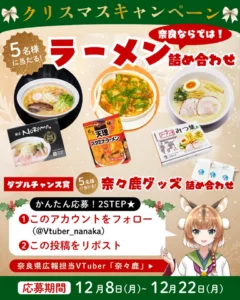 前の記事:奈良県公式VTuber「奈々鹿」によるSNSキャンペーン第3弾「クリスマスキャンペーン」開催