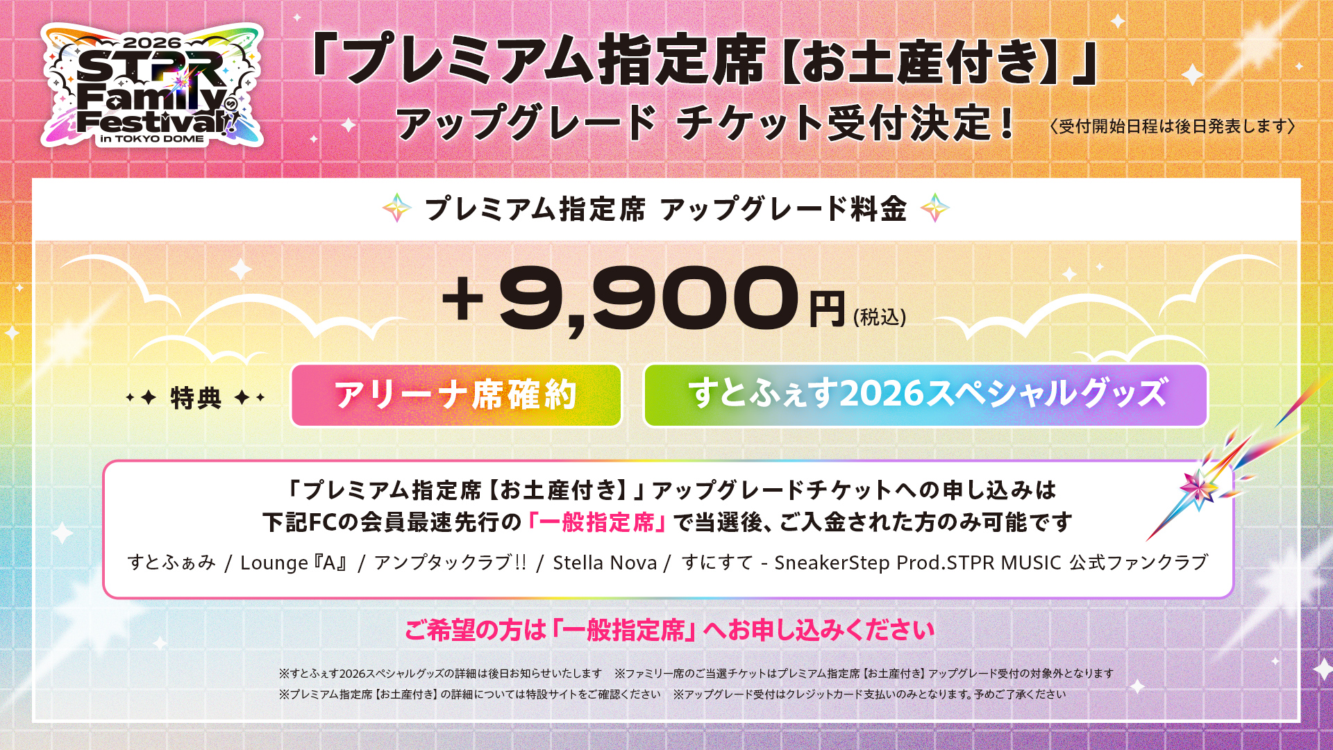 「STPR Family Festival!! 2026」(すとふぇす)も開催の前後には、ころんが正月にさいたまスーパーアリーナで、るぅとは2~3月に東京・代々木第一体育館で、それぞれワンマンライブを開催する予定となっている。