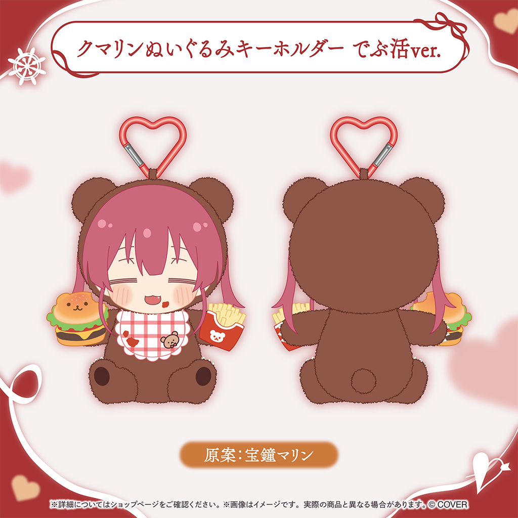 抱き枕カバー、ボイスキーホルダーなど全4種類を揃えており、イラストはあかさあいが務めつつ、「クマリンぬいぐるみキーホルダー でぶ活ver.」「ボイスキーホルダー」のデザイン原案は宝鐘マリン本人によるものとなっている。