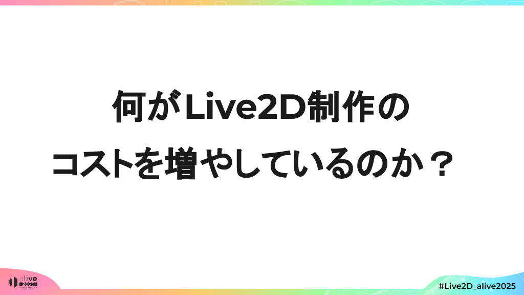 続けて「Live2Dのコストが増えている」点へとテーマがシフトする。手軽さとは対照的にコストが増えているとはどういうことか。