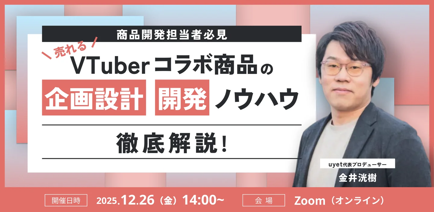 前の記事:uyet、売れるVTuberコラボ商品の企画設計・開発ノウハウを解説するウェビナーを12/26開催