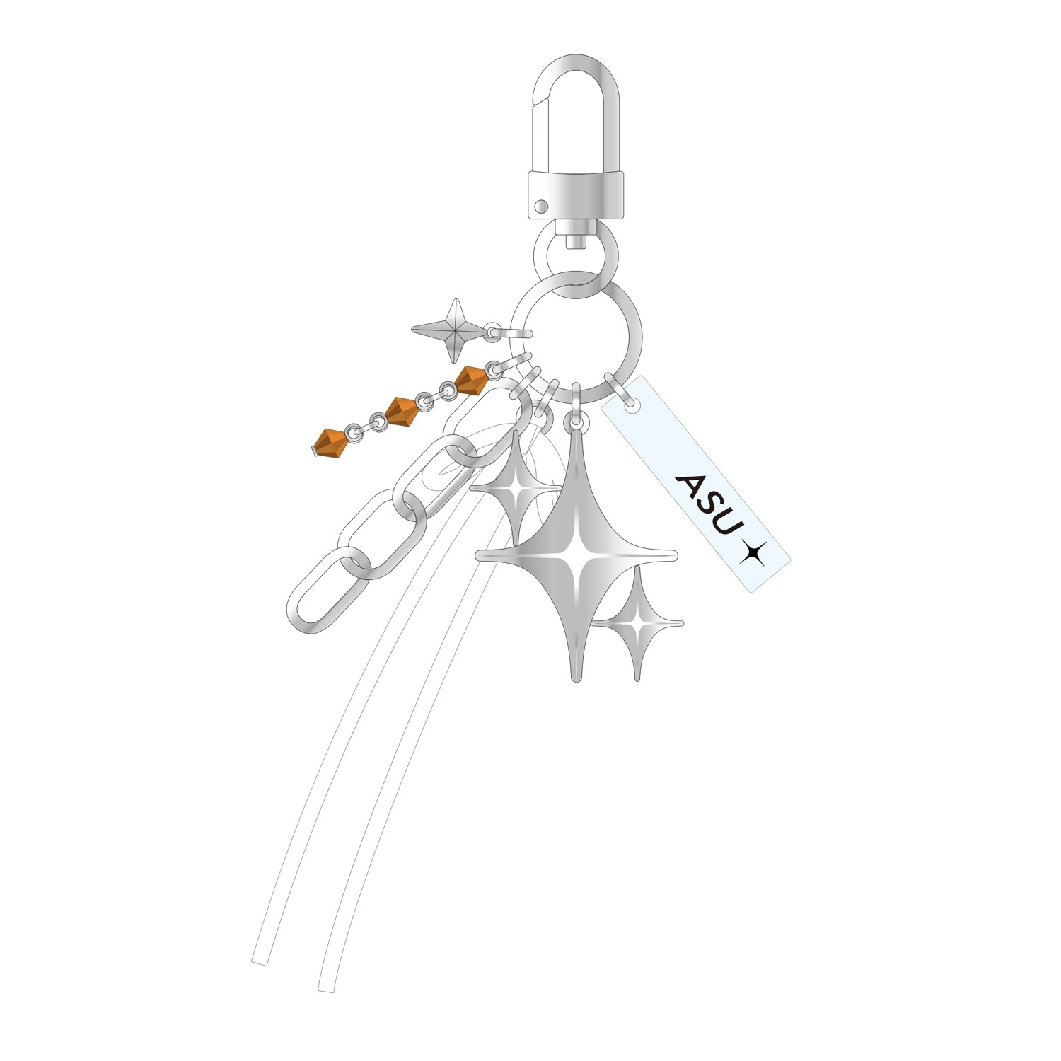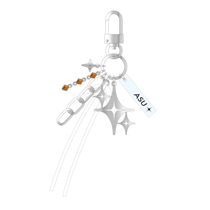 複数の明透/琶舞のモチーフがついたキーホルダーです。