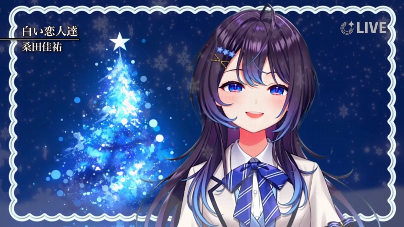 定番の挨拶と、配信に来てくれた「依り人」(花依さんのファンネーム)たちへの感謝を伝えた後、「今日が、クリスマスを憎みがちな皆さんにとって、せめてもの特別な思い出になりますよう。クリスマスにぴったりの曲を歌わせていただきます」と、切れ味鋭い一言と共に企画趣旨を説明。録画ではなく、ギタリストと一緒にスタジオから配信している完全生放送であることを改めて伝えた。