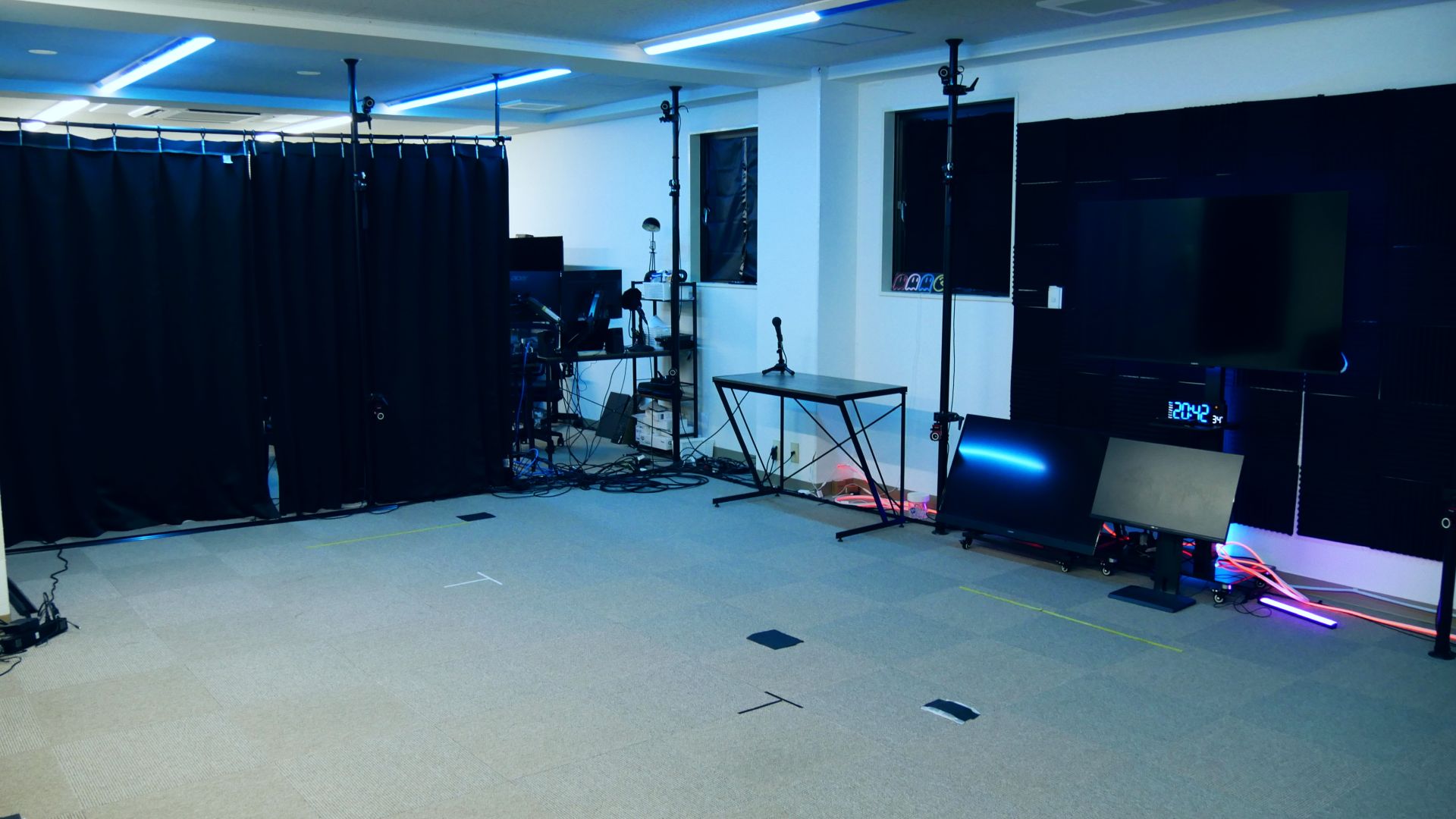 同社は、XR開発やVTuber制作を請け負ってきた企業で、江東区にスタジオを構えている。新サービスではOptiTrackベースの光学式モーションキャプチャーシステムを現地に構築し、会場の広さや反射物、導線、演者人数、用途(ライブ/ダンス/演技/検証等)などを加味して、設営・キャリブレーションを行ったうえで収録を実施する。