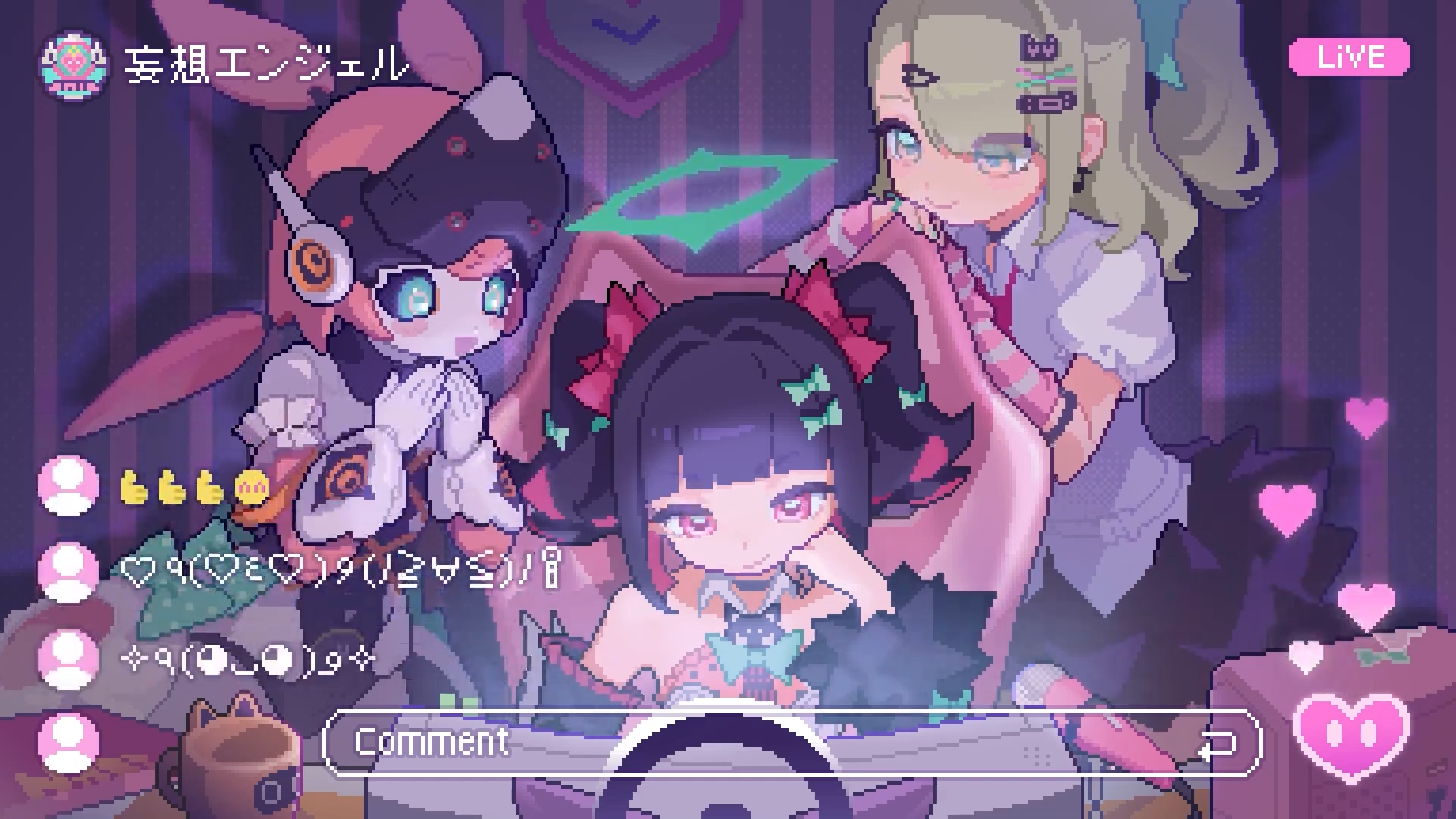 妄想エンジェルの3人はゲームの最新シナリオで本格的に登場。自身の活動を広めるためにSNSを積極的につかう姿がみられ、”配信機材”をとおしてさまざまなゲームをプレイすることが描かれていた。