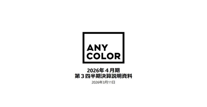 にじさんじを運営するANYCOLORは、 2026年4月期 第3四半期決算を発表した。