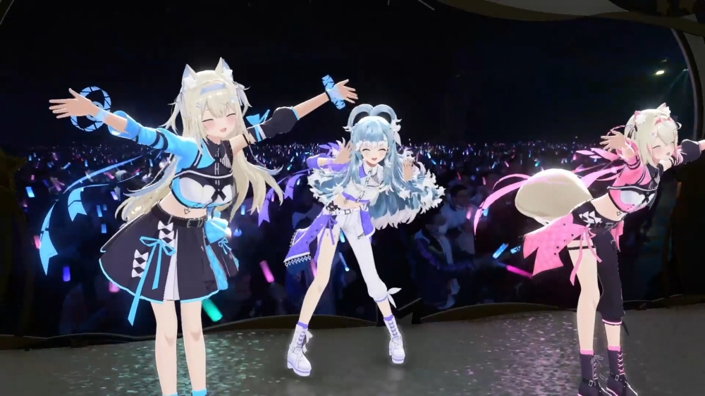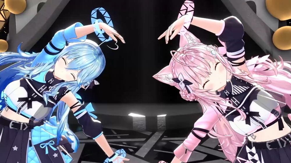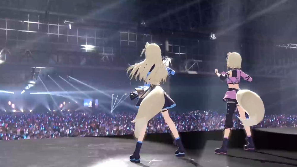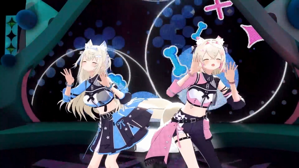 続いて、可愛さ全振りで会場中を魅了したのが、3曲目に登場した双子の姉妹VTuber「FUWAMOCO(フワモコ)」。大人気VTuberの周防パトラさんが作詞・作曲・編曲を担当したオリジナル曲(作詞はFUWAMOCOと共同)「Lifetime Showtime」で、歌もダンスも可愛い仕草もさすが双子と言いたくなる相性抜群のステージを披露した。