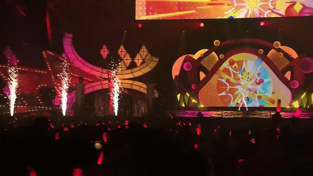 「もうむりぽ」な激萎えテンションをポジティブへと持っていく歌詞に合わせた、全身を大きく使うダンスと、感情表現の切り替えが楽しい歌声や表情で、満員の観客をどんどん元気にさせていく。真っ赤な照明とステージ前に上がる火柱の演出も熱い。歌い終えた後の退場の仕方まで、サービス精神いっぱいの楽しいパフォーマンスだった。