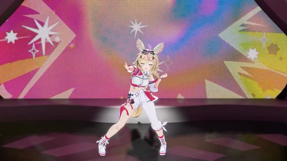 「STAGE1」を締めくくった最後の曲は、「7th fes」に向けて作られた最新の全体曲「Ridin’ on Dreams」だが、その2曲前にソロでは最後のパフォーマンスを行ったのは、ホロライブ1期生のフブキさん。YouTubeで公開されているMVを背景に、オリジナル曲「グローエンブレイス」を披露した。MVもホロライブプロダクションの事務所の風景から始まるこの曲は、フブキさん自身が「ホロライブプロダクション、みんなのことを歌った」と語る楽曲。MVの青空をバックに、爽やかで疾走感あふれるメロディーに乗せ、「キミはわたしがみつけた光」と感情いっぱいに歌うフブキさん。ペンライトを振るファンの多くが「お前もな」と思っていそうだ。