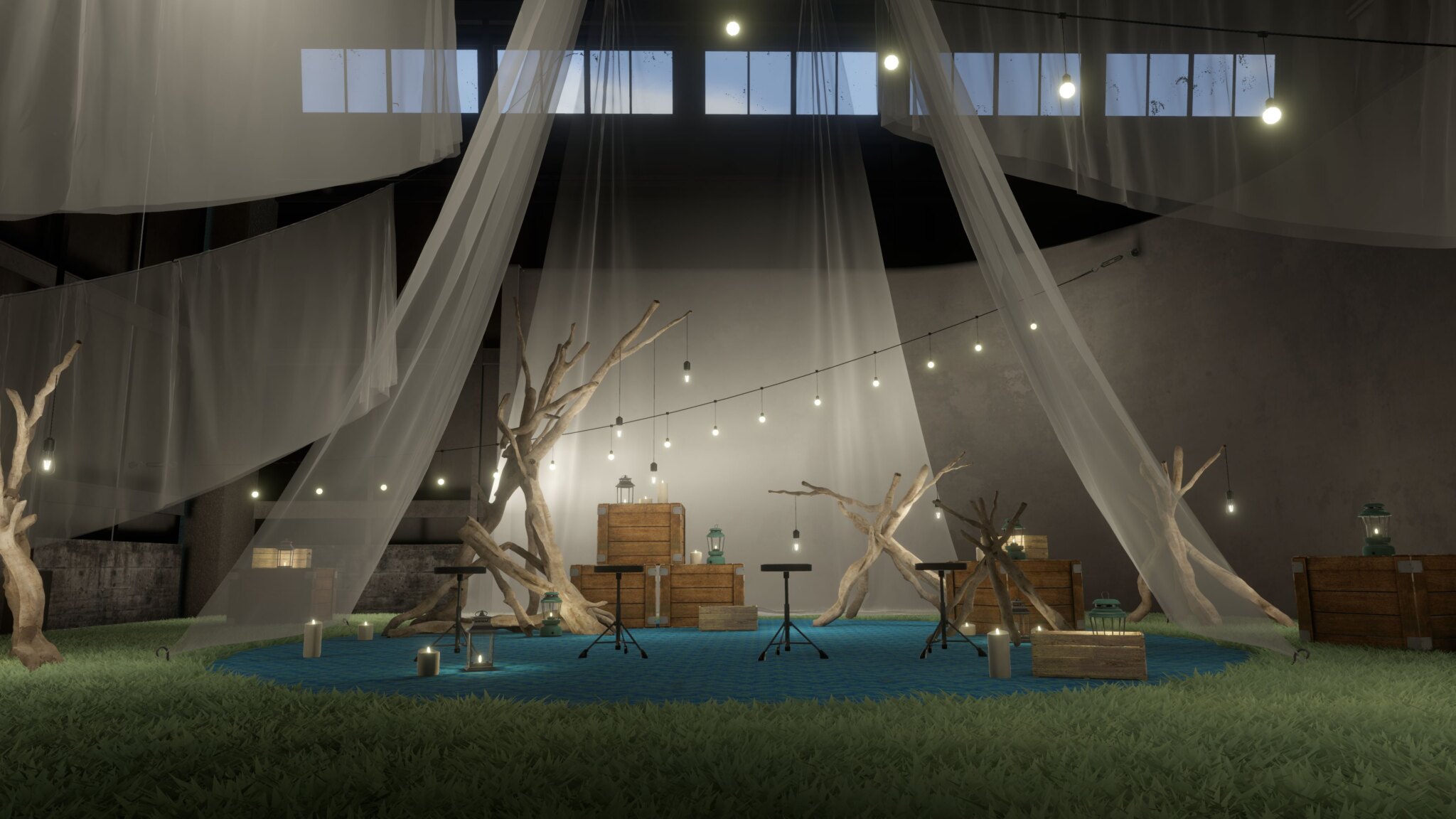 こうした場を作るためにいくつかクリエイターの候補が挙げられた中、選ばれたのがVTuberライブ制作などに大きな定評のあるMIGIRI。企画から数えると1年ほど費やしたそうですが、ディレクターのTakaomiさん、モデリング担当の藍上アオイさん、エンジニアリングのAyanoさんの3名がフル稼働したことで、実制作期間はなんと約2ヶ月だったそう。