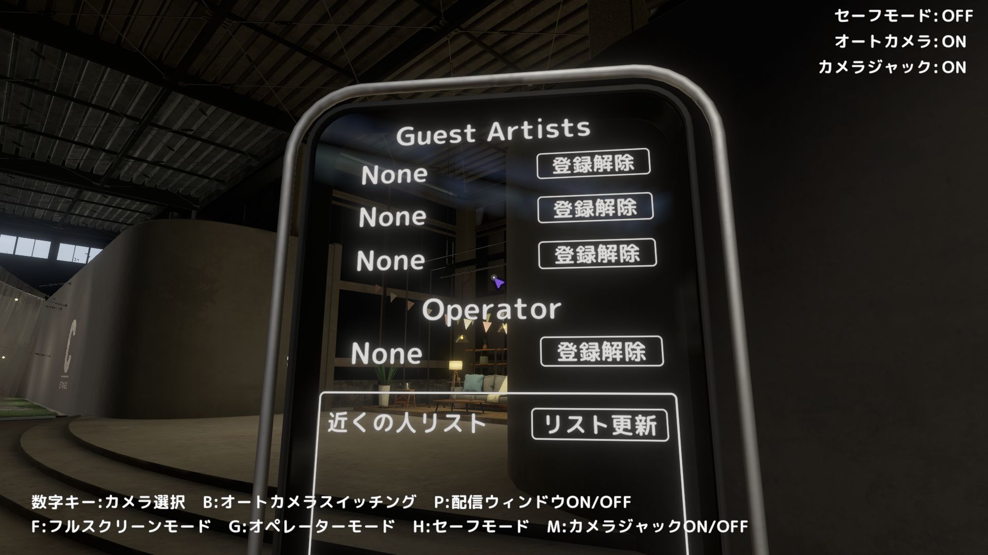 まず、各ステージには「出演者」の概念がシステム的に存在。メインの出演者、ゲスト出演者3人、さらにオペレーター1人までをステージ上に登録することができます。