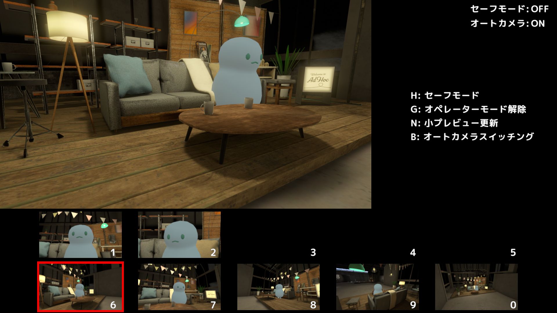 従来のVRChat配信は、カメラ操作は自分かスタッフの手で行う必要があり、また周囲にいる人の干渉を防ぐには専用のワールド構築などが求められるものでした。VRChatに不慣れな人でも、手軽にいい感じの映像で、しかも安心して観客入りのVRChat配信ができる。配信者にとって、これ以上とない好条件がそろっているのが「AdHoc」なのです。
