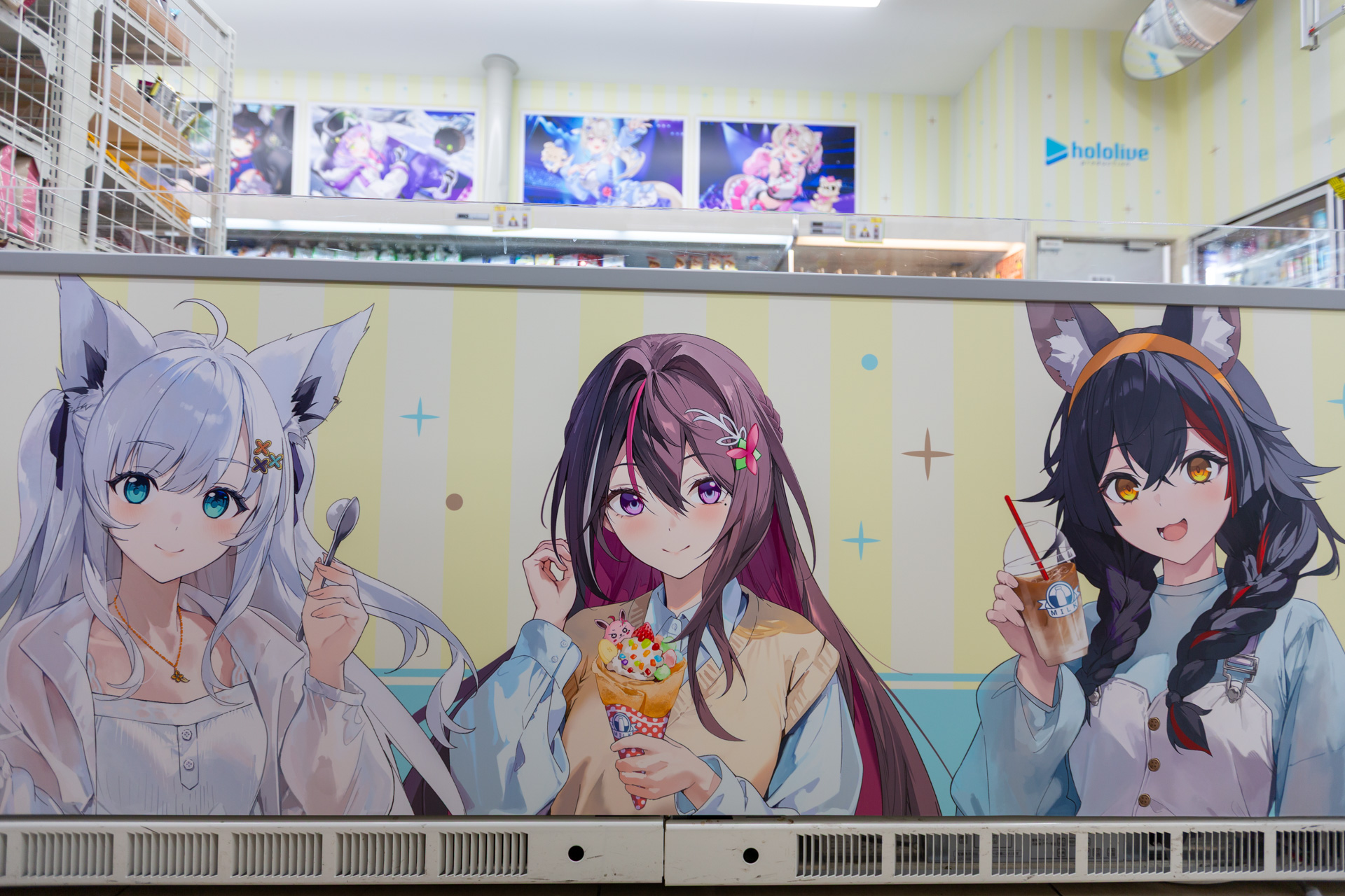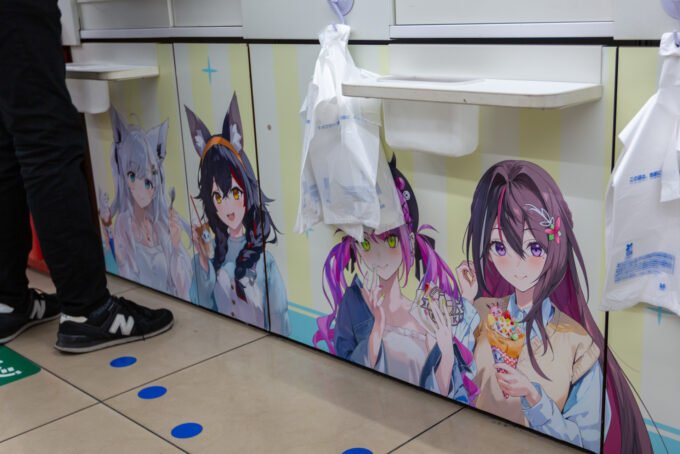 今回、渋谷道玄坂上店を実際に取材して、店内のラッピングを撮影! 冗談ではなく、ありとあらゆる場所にホロメンの描き下ろしイラストが飾られており、その力の入れようが伝わってきた。10時の販売スタートを前に店頭には行列ができており、「限定グッズをどーしても先行で手に入れたい!」というファンの熱量の高さがひしひしと伝わってきた。