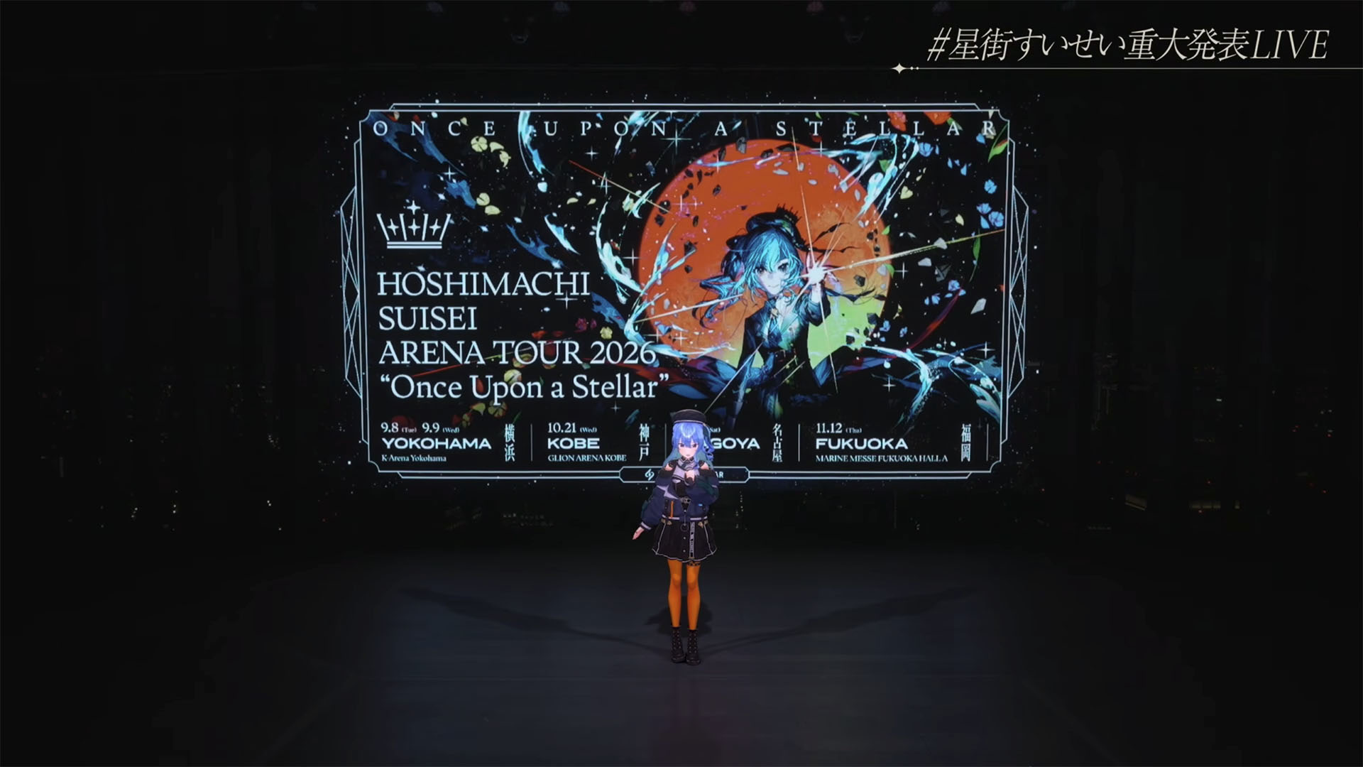 同時に事務所のXオフィシャルサイトの公開、公式ファンクラブ「星詠み」の設立、9月8、9日に横浜・Kアリーナ横浜、10月21日に神戸・GLION ARENA KOBE、11月7日に名古屋・IGアリーナ、11月12日にマリンメッセ福岡A館での2026年アリーナツアー「Once Upon a Stellar」の実施も明らかにした。ほかにTAKU INOUEとの音楽ユニット「Midnight Grand Orchestra」で2027年2月11日に幕張メッセにてライブを実施することも発表した。