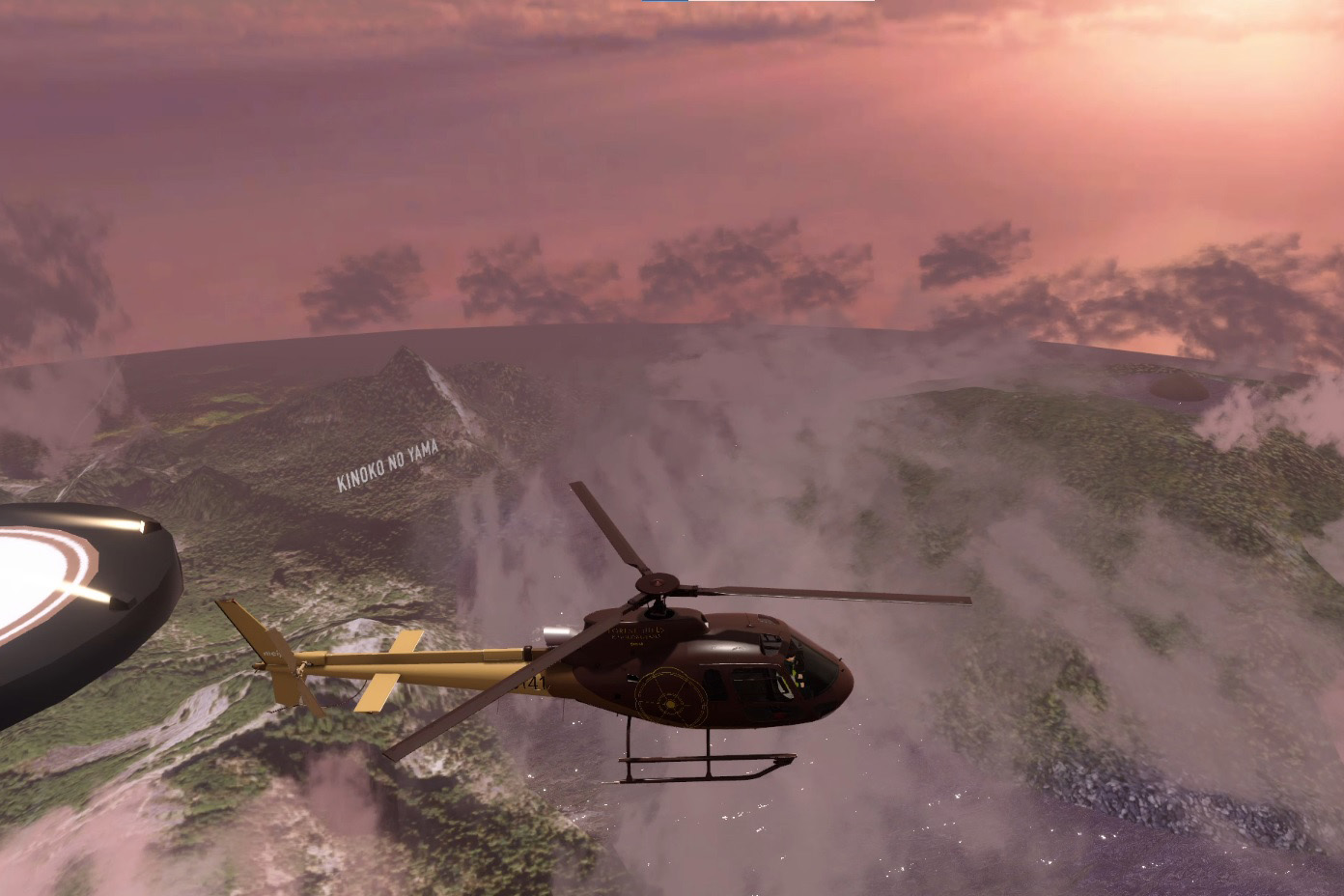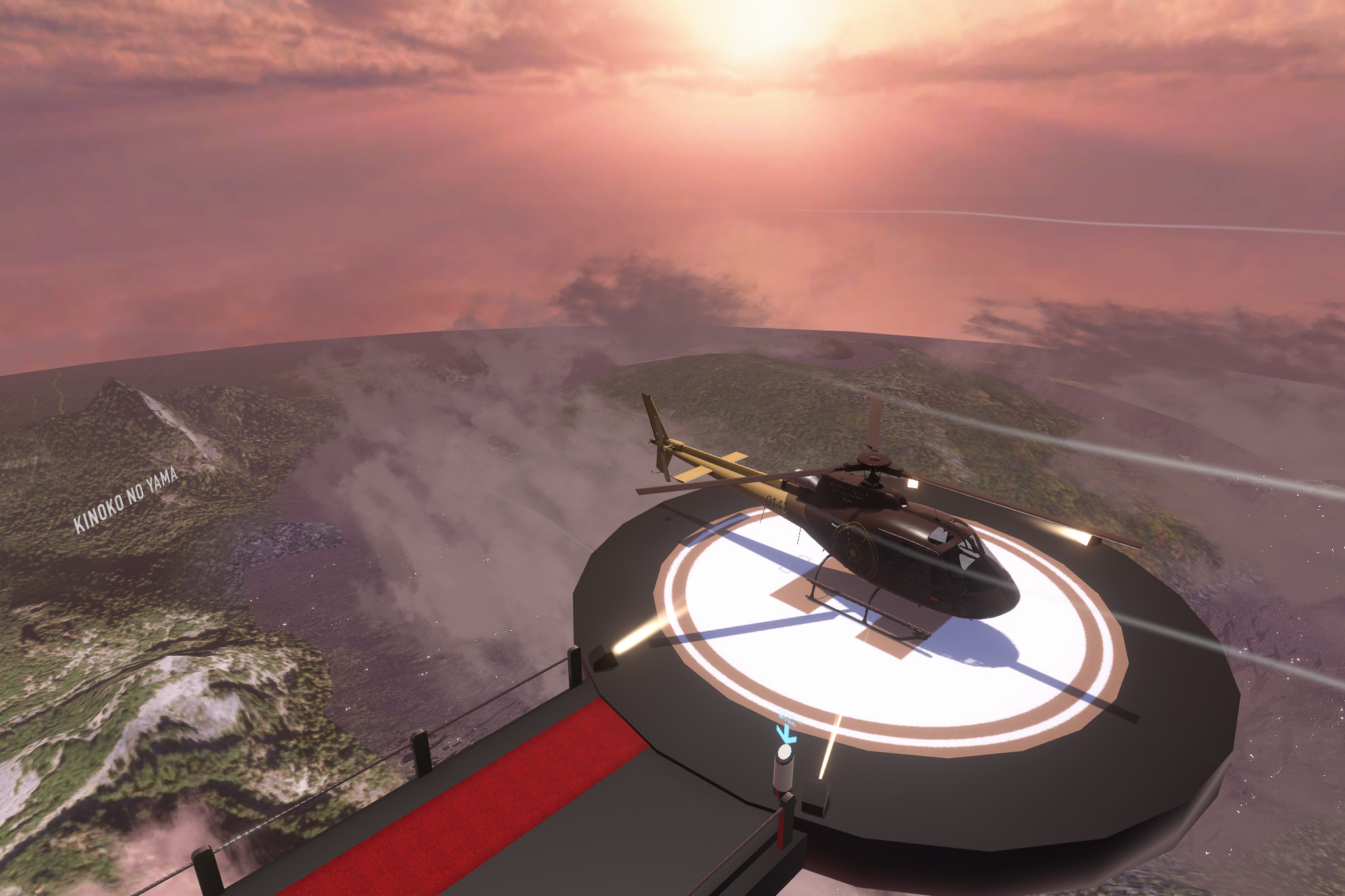 ヘリコプターで向かう