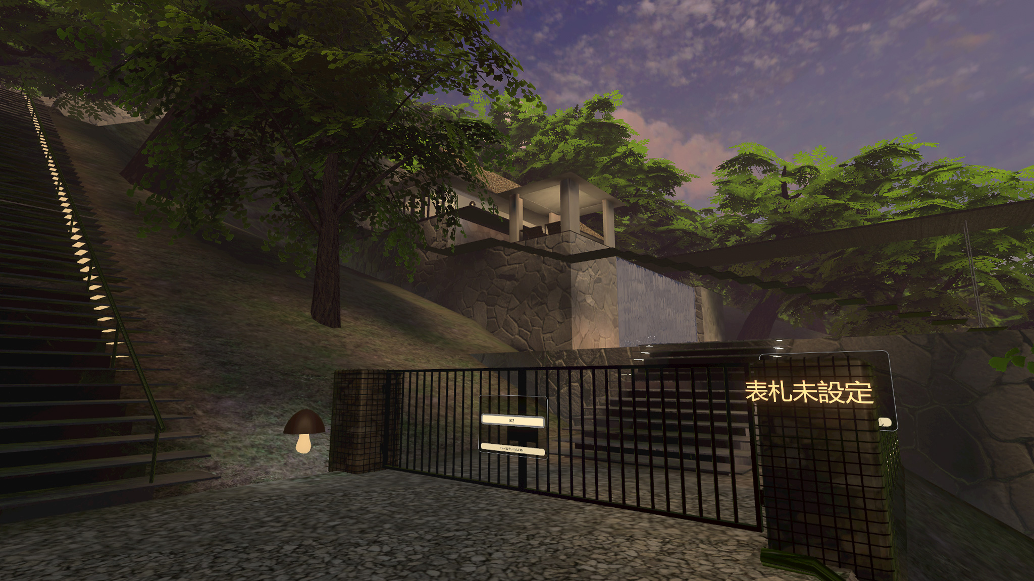 エリア自体は購入者やゲストなら行く事ができるが、家の一軒一軒には購入者が紐づけられているため、他の方の家に入ることはできないようになっている。写真の「表札未設定」の部分には、購入者のネームが表示されるようになるという。