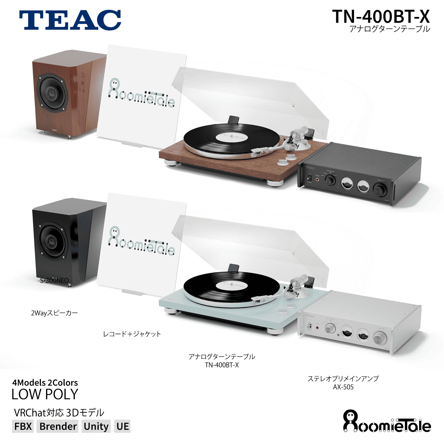 オカムラは30日、メタバース用の企業公式3Dデータ販売サイト「RoomieTale(ルーミーテイル)」にて、音響機器メーカーであるティアックの公式3Dデータの取り扱いを開始したことを発表。同日より、TEACブランドとして展開するアナログターンテーブル「TN-400BT-X」の3Dデータが発売。
