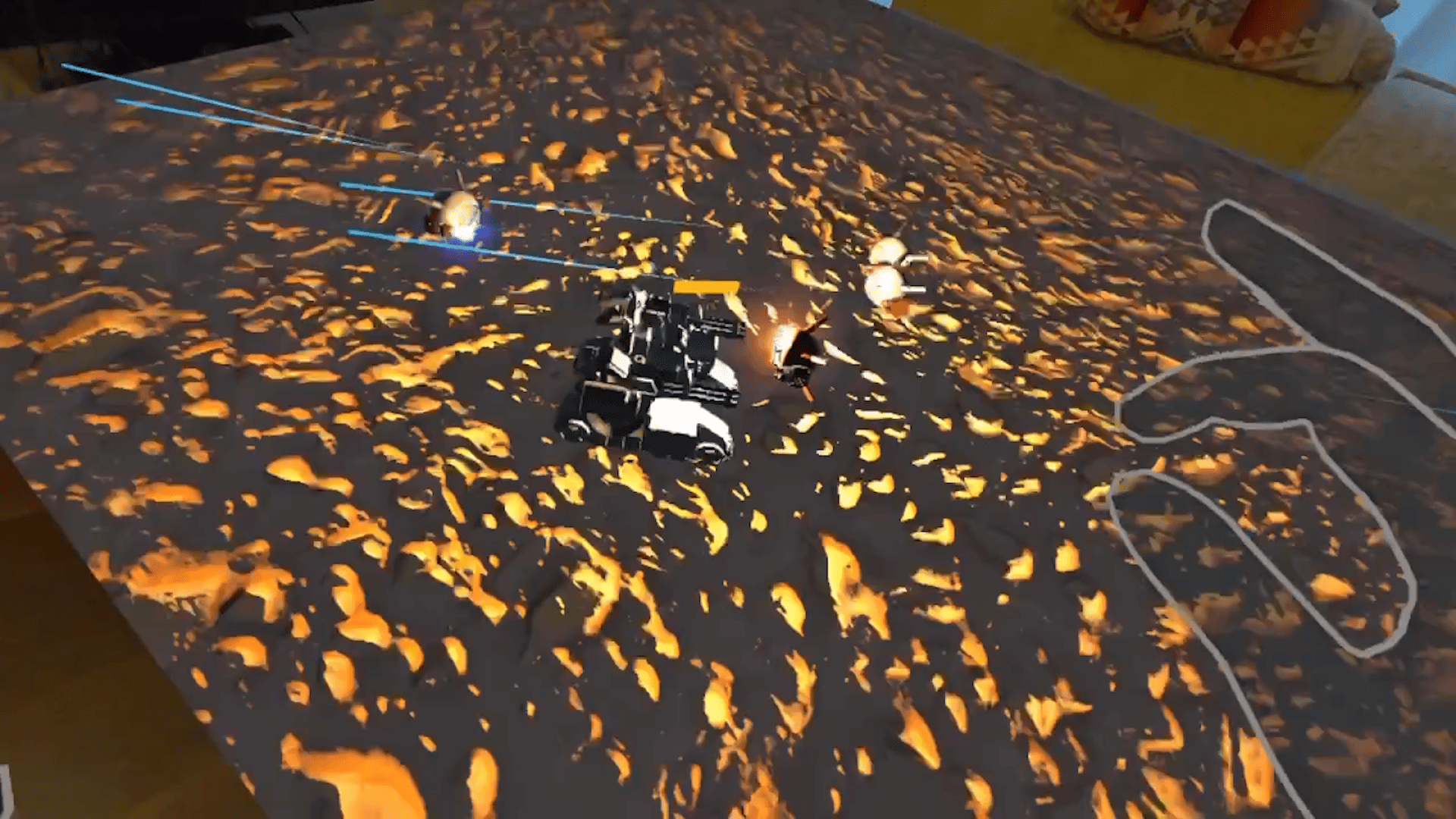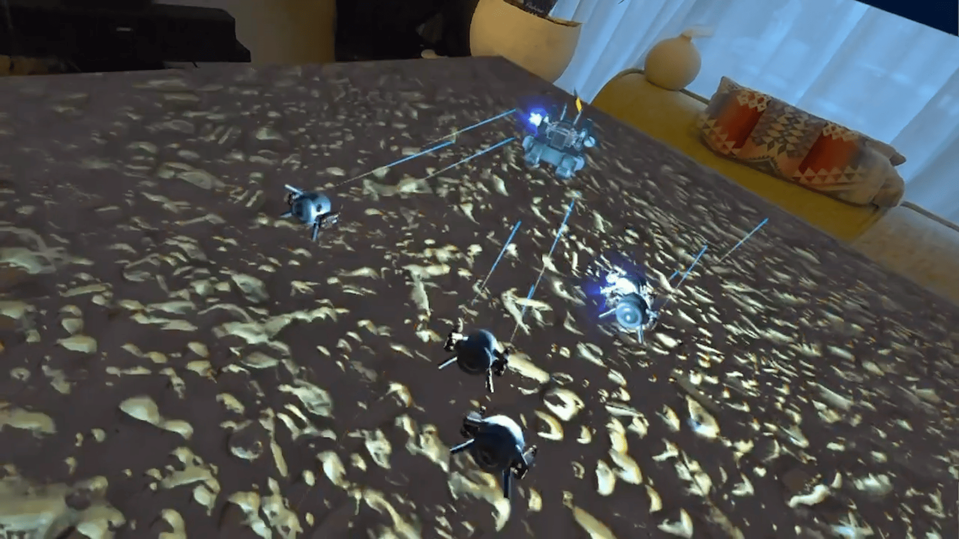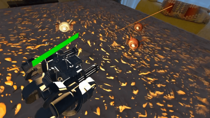 本作は、Meta Questの最新MR技術「Scene API」を活用した「卓上バトルゲーム」だ。現実世界の自宅のテーブルがをのまま戦場となり、全ての操作をハンドトラッキングのみで行う。現実世界のテーブルの上をそのままゲームフィールドとしてプレイすることが可能となっている。