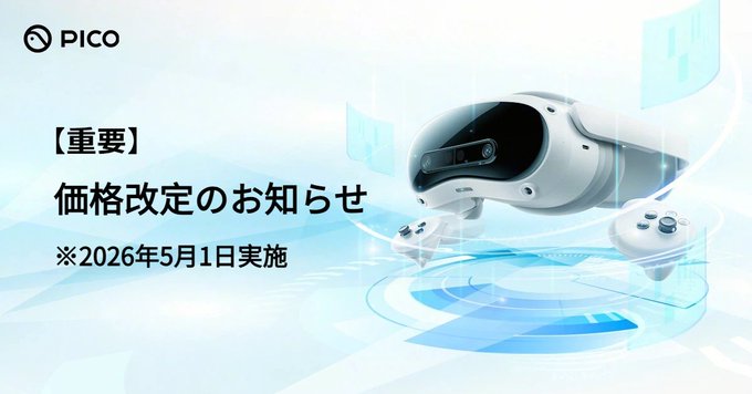 PICOは10日、VRヘッドセット「PICO 4 Ultra」の価格改定を2026年5月1日(金)0時より実施することを発表。税込みで現行価格8万9800円のところ、改定後は10万4900円となる。4月30日(木)までは現行価格で購入可能となっている。