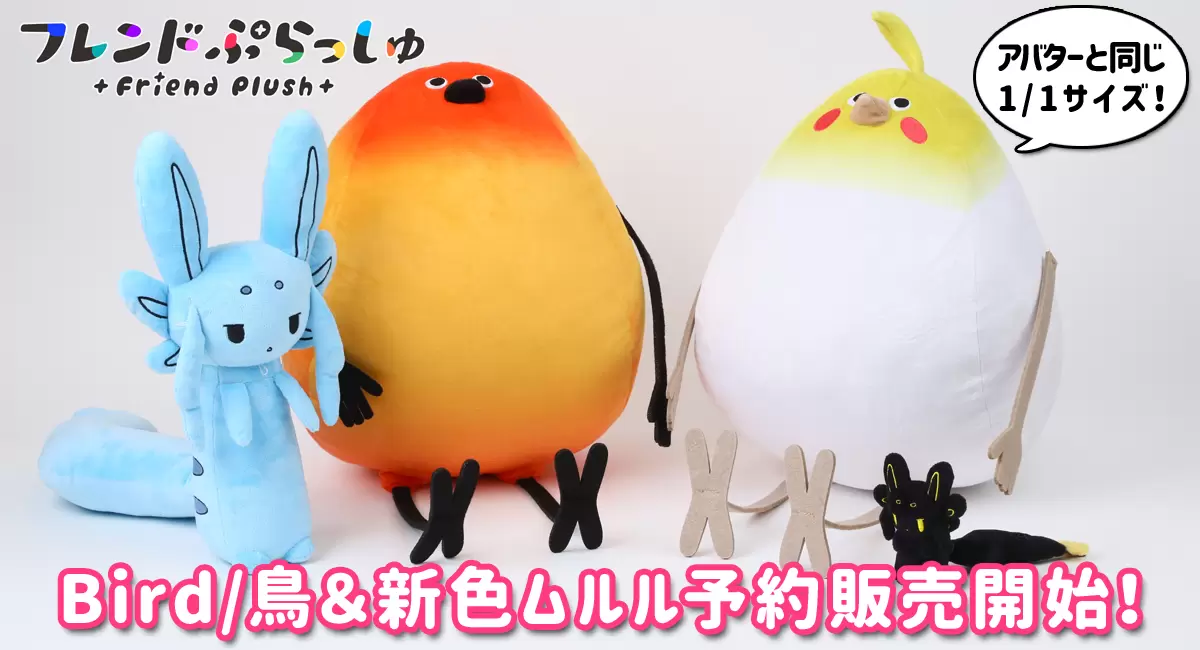 diVRseは8日、同社より展開中のメタバースキャラクターグッズブランド「フレンドぷらっしゅ」にて、新たに「Bird/鳥ぬいぐるみ」および「ムルル」「赤ちゃんムルル」新カラーの発売を発表、公式サイトで予約通販の受付を開始した。