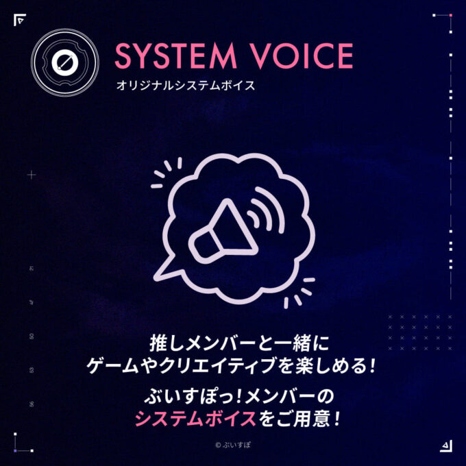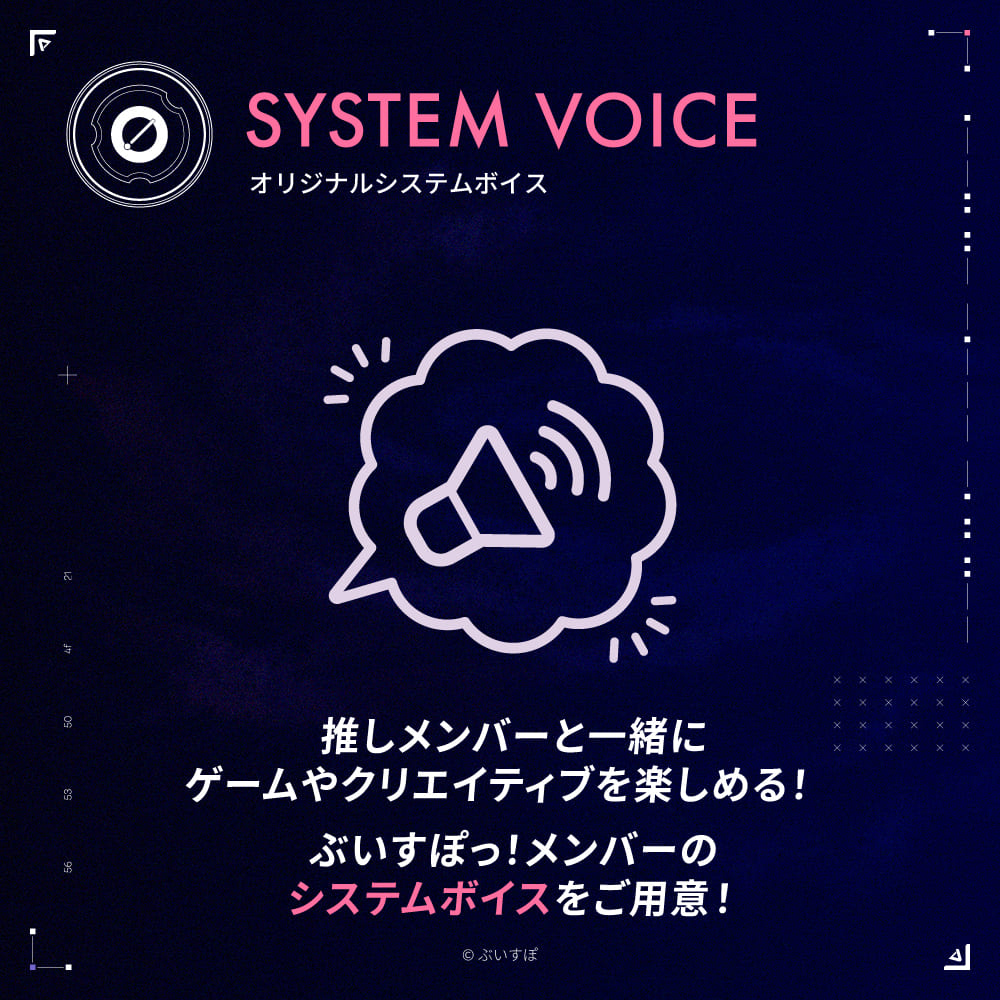 ぶいすぽっ!メンバー1名分のシステムボイスを全23種(※)から選択可能。