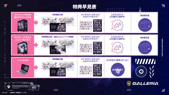 GALLERIAは15日、ぶいすぽっ!コラボモデルのケースデザインを刷新すると共に、一部のモデルでスペックのリニューアルを実施。同日より全国のコンピューターショップ「ドスパラ」各店舗、および「ドスパラ」通販サイトにて販売を開始。