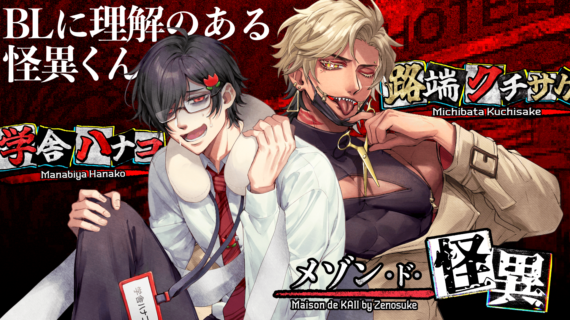「メゾン・ド・怪異」は、BL漫画家ゼ之助がプロデュースする、“BLが好き・BLに理解がある怪異”をコンセプトとした男性VTuberユニット。廃ホテルを改装したひとつ屋根の下で暮らす怪異たちの、 一癖も二癖もある日常を描くコンテンツとして展開されている。