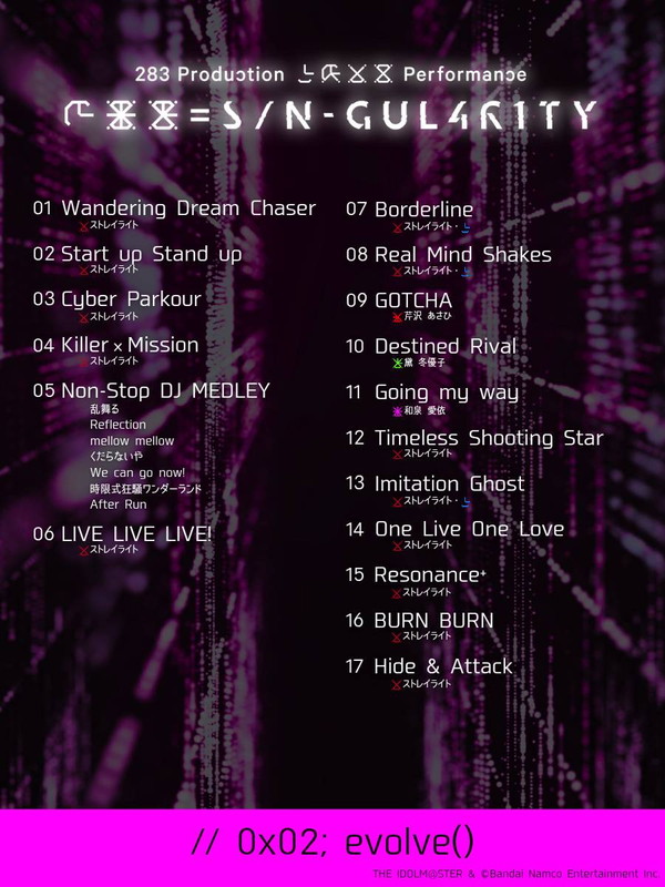 第2公演「// 0x02; evolve()」のセットリストはこちら。