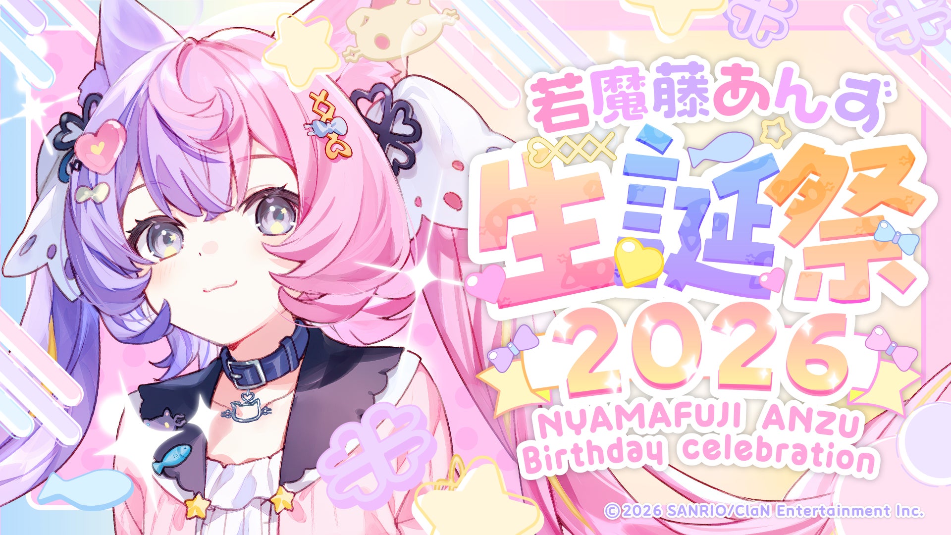株式会社ClaN Entertainment(本社:東京都港区 代表取締役社⻑:⼤井 基⾏、以下ClaN)は、株式会社サンリオ(本社:東京都品川区)と共同で行うVTuberプロジェクト「にゃんたじあ!」に所属する「若魔藤あんず」が4月19日に誕生日を迎えたことを記念し、誕生日グッズの販売を行います。